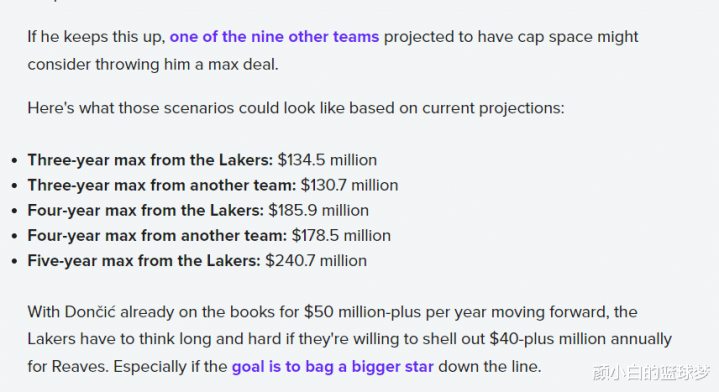 里夫斯今夏拒绝执行自己26-27赛季的球员选项,同时他拒绝了湖人四年8920万的提前续约,明夏里夫斯可以从湖人拿到三年1.345亿、四年1.859亿、五年2.407亿,如果签约其他球队三年1.307亿、四年1.785亿。如果湖人觉得给里夫斯4000-5000万太贵,本赛季他们可以找哪些交易伙伴呢?